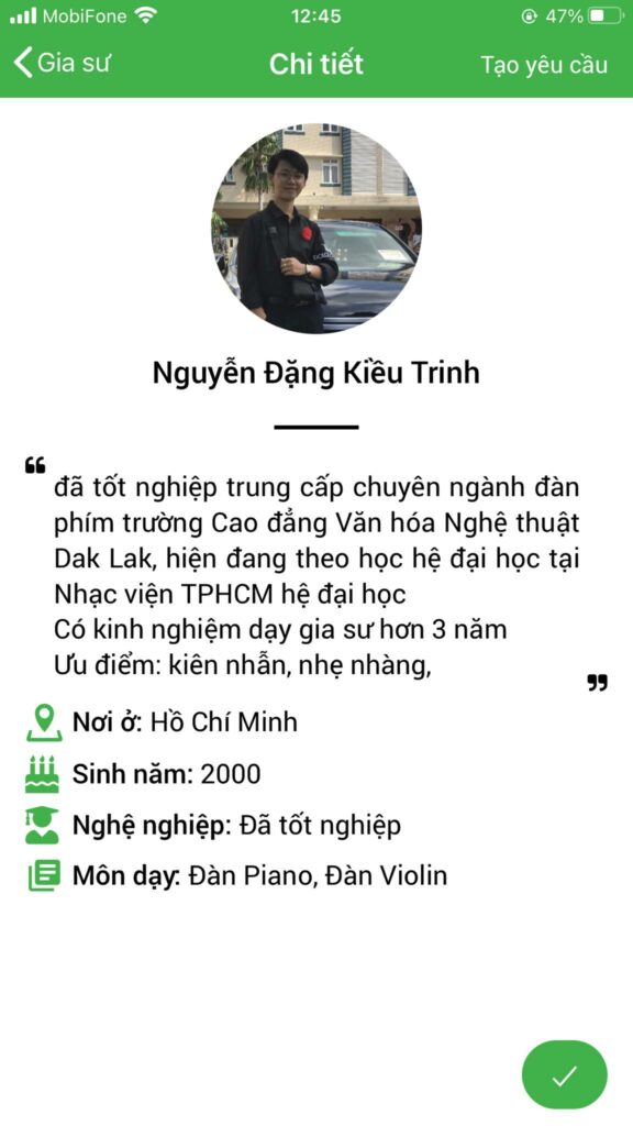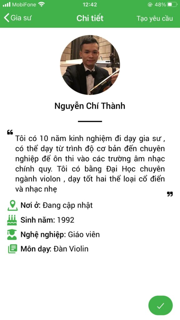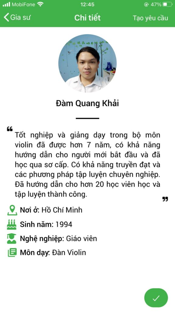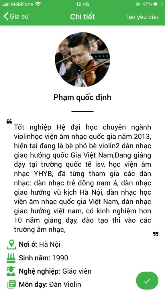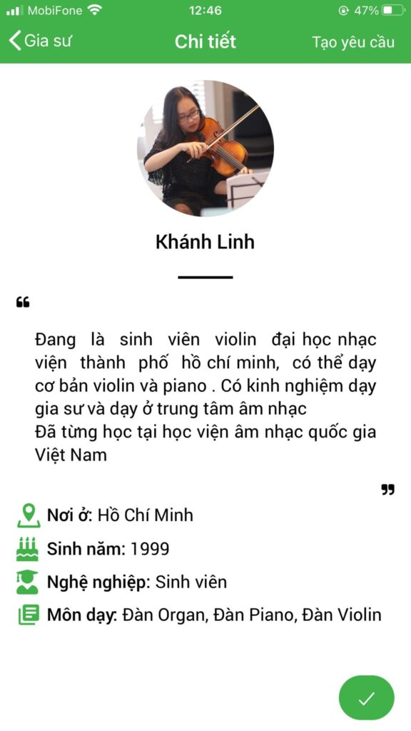 Hệ thống website và ứng dụng Daykemtainha.vn hướng dẫn bạn tham khảo giá học phí chính xác dựa trên form dưới đây đã được lập trình sẵn. Bạn chỉ cần đăng nhập sau đó nhập đầy đủ các thông tin yêu cầu, môn học chọn ‘ đàn violin ‘, hệ thống sẽ ra số tiền học phí tự động theo đúng nhu cầu của bạn.